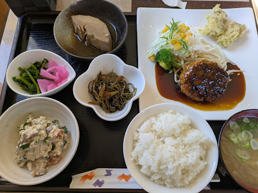 2024年7月 平日のランチ。 常連らしき先客3名、空いていました。 なごみ定食+デザートセットで1595円。 シシカバブ風ハンバーグがメインでした。野菜サラダはシャキッと、ラタトゥイユ、切り干し大根の煮物など、野菜の小鉢はしっかり目の味。 ハンバーグはピーマンなど入りスパイシー、つなぎが入っていないそうで、しっかりした食感。塩分は控えめでした。 ガトーショコラは温かく、チョコソースがとろり。アイスコーヒーはほろ苦く、ケーキと相性がよかったです。 お腹満足😊 気さくな店主さんが切り盛りされています。 常連さんは食後にお昼寝、空いていればゆっくりできそうです。 トイレは広く、フタは自動開閉でした。 支払いは現金のみ。 店舗前に車6台は停められそう。 店舗に近くなると、畑の中の細道を通っていく感じなので...