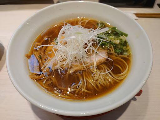 Read more醤油ラーメンとたまごかけご飯をいただきました。 スープは、鋭さをうまく抑えレンゲを口に近付けた時にふわっと口の中に駆け込んでくる醤油の薫りがとても良いです。スープをすくうレンゲが止まりません。麺は独特で、ぱっと見にそばのような少しグレーがかった、しかしよく見ると半透明な細ストレート、食感も程よいコシがあり、とろみのないスープもしっかりと持ち上げてきてくれます。気がつけば、もう麺がなくなってる状態。チャーシューは、持ち上げようとするとホロホロ崩れてしまう柔らかさ、スープに合わせた味で一体感があります。メンマは短冊状のもので、ギュッとした噛みごたえ、チャーシューと同じく味をスープに合わせてありますが、食感のアクセントになっています。 たまごかけご飯は卵の状態での提供、中身はオレンジ色に近いいかにも濃厚そうな卵黄のものです。専用の醤油さしに入った醤油とたまごを混ぜ用の小鉢でまぜまぜ、注ぎ口から白米に投下、少し味見しながら残りの醤油を追加しつつ、ざらざらっと一気に口から喉へ。 どちらも瞬間に胃の中に収まりました。 入ったタイミングがよかったのか、着席して間もなく次々と後のお客さんが入り、食べ終わった頃には8割席が埋まってました。別メニューの焼きネギを、注文入ってからバーナーで焼いて出されており、注文の1つ1つを丁寧に提供されていました。 →2021年9月25日再訪 メニューにオススメと書かれていたざるチャーシューと、水餃子をいただきました。 ざるチャーシューはざるそばに見立てたつけ麺に、つけ汁に大判のチャーシュー3枚、器のように縁に沿わせて盛り付けられたものになります。チャーシューをどかす事なくそのままつけ汁に麺をつける事ができ、面白いアイデアです。麺は、恐らく醤油ラーメンとは別もので白い中太なストレート麺になります。つけ汁はあっさり系で、こってり系に慣れてしまっているとちょっと物足りなさを感じるかも知れません。チャーシューは醤油ラーメンの時のものと同じ?ホロホロと崩れてしまう柔らかさチャーシューです。このチャーシューの器の中に短冊メンマがたくさん入っていて、麺と一緒に食べれば様々な食感を楽しめます。スープ割りは店主さんにお願いすれば、出汁を煮立ててつけ汁の器にお玉で入れてくれます。 水餃子は皮が厚手のモチモチとした食感に、たくさん詰まったひき肉とネギのジューシーなあんが美味しく、大きなお皿に盛り付けられちょっとビックリしているのも束の間、知らないうちに平らげてしまいます...