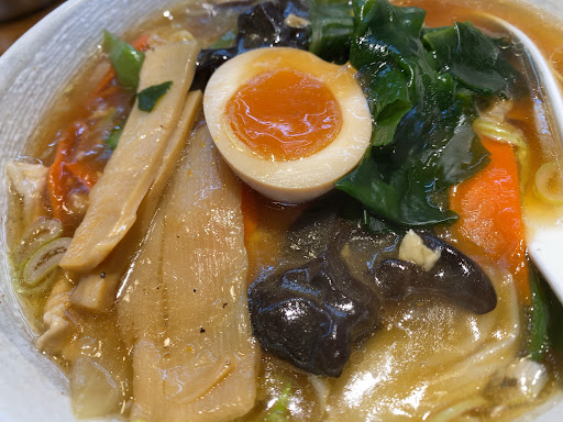 結構な人が並んでいるので人気店なのかな?ということで休日昼に3名で入店。シェアして食べました。 入店までは20分くらいかかりました。 私は1番スタンダードであろうということで興兵衛ラーメンを、友人は2260円とかなり高額なので相当なものが来るだろうと冷やし中華を頼み、もう1人は無難にチャーハンを頼みました。 そして実際に料理が来るまでがかなり長い。ここでも20分くらい?待たされました。その間にも席を立っている人はいるのに待っている人をすぐには入れずに待たせています。正直ここが混んでるのは味ではなくこのオペレーションの悪さだと思います。 実際に来た料理ですが、私が頼んだ興兵衛ラーメンはまさかの醤油味の中華あんかけラーメン。これは説明を読まなかった自分が悪いので何も言いません。一般的なラーメンよりも1.5倍くらいは量がありそうな大きさでした。評価の方は正直特筆すべき点が量以外ないと思います。優しい味わいって言えばいいんですかね。とにかく量が多いんですが、価格は1380円。質より量という評価なら妥当かも知れませんが、この値段を出すなら他にもっと選択肢があると思います。 友人の食べた冷やし中華ですが、こつらもかなりの大皿。量はありますね。皿はキンキンに冷やしてあって好印象でした。具は一般的にイメージされる冷やし中華にゴマだれ、生エビが1本ついています。正直これで2260円取るのはあまりにも高すぎます。チャーシューの細切りはパッサパサで中華あんかけのラーメンには入っていませんでしたが恐らく普通のラーメンの具材と同じものなんじゃないでしょうか?ラーメンのクオリティもお察しします。全体的な味は悪くないけどここまでの価格を出させるなら納得出来るような1品でもあればいいのにエビも1尾って...。夏だけの期間限定だからこの強気な価格なのかもしれませんが、あまりに良心がない価格です。 チャーハンはもう本当に家の焼き飯?って感じです。パラパラでもないおこげの入ったものが出てきました。正直味では判断できませんでしたが細かく刻まれた人参?が入っていて物凄く家庭感があります。価格の上2つに比べれば普通...といっても1000円近かったと思います。今どき冷凍食品のやチャーハンの方がはるかにレベルが高いと思いますよ。 総評ですが、とにかく価格に対して質が釣り合ってないです。デカ盛り専門店なんですかここ?でもデカ盛りにしても中途半端です。量より質といってもこの価格を支払うなら正当な価格かそ...