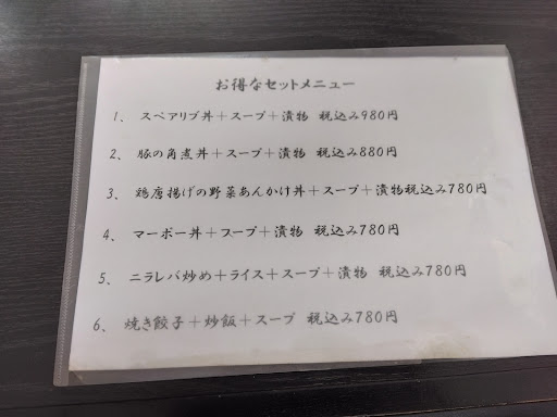 Read more土曜日ランチ時間帯に入店。先客なし。食事エリアと食材等購入エリアに分かれていますが、食事エリアにもきゅうりや果物が置かれていて、何となく本場中国のお店に来た気になってしまった。瓶ビールと餃子・炒飯・スープのセットをオーダーしました。餃子の皮はもっちりしていて肉汁が飛び出しますが、卓上調味料とのマッチングが良くない。辣油と醤油は中国人向けの味なので、数年前に流行った胡椒と酢で食しました。炒飯は少々味が濃いものの不味くはなかった。スープは油揚げと豆腐のお味噌汁でした。約50分ほど滞在したが、来たお客さんは食材購入目的の中国人のみで、何となく居づらい気分に。しかし非常にリ...