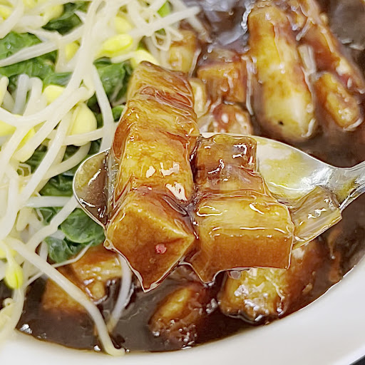豚の角煮丼を食しました。 味噌汁とザーサイがついて税込880円でした。 豚の角煮丼は、大盛りのライスの上に拍子木切りされた豚の角煮丼ともやしと小松菜の炒め物が盛られていました。 豚の角煮は脂身がたっぷりとついていました。 お肉は柔らかく噛み締めるほどに味わいがあります。 脂身がトロトロとして甘味があり、旨味がたっぷりです。 豚の角煮にかけられている餡はとろみがあり、塩梅が良く旨味とともに濃厚な味わいです。 もやしと小松菜のシャキシャキとした食感も良く、ライスの炊き具合も良かったです。 ザーサイは辣油と和えられていてコリコリとした食感とともにピリッと辛いです。 味噌汁の具材は油揚げ、わかめ、ネギなどで具沢山でし...
