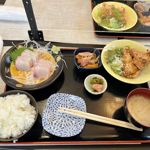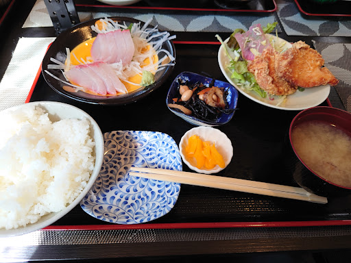 Read moreランチで伺いました。 お刺身の定食で、鶏唐揚げかハムカツか選べまして、当方は鶏からにしました。 唐揚げはオマケ程度についてくるものかと思っていたら、メインのおかずかと思うほどのビッグサイズ! 野菜の煮物もついており、栄養バランスも満点です。 個人的には、漬物に明太子まで入ってたことに感動しました。 お味噌汁も豚汁的な感じで、具沢山でした。 これで880円はすごいです。