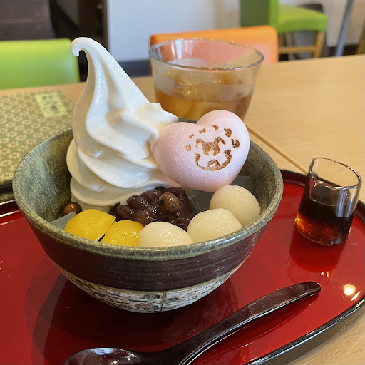 雪の樹(ソフトクリームあんみつ)を食しました。 税込680円です。 雪の樹(ゆきのき)というネーミングも風情があって良いです。 見た目も上品で涼しげでした。 ソフトクリーム、白玉3個、寒天、粒あん、栗、ピンク色の最中などに黒蜜をかけて頂きました。 ソフトクリームはミルキーで濃厚な味わいがしてねっとり冷んやりとした食感が良いです。 白玉のもちもちつるりとした食感や最中のパリパリとして香ばしい味わいも良いです。 粒あんは、小豆が一粒一粒しっかりとして味わいが良く、栗は甘味がありしっかりとした味わいがありました。 寒天の食感や風味も良かったで...