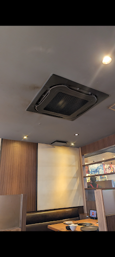 さらなる問題は、店内が暑すぎる。 席にもよるのかと思いますし、火を使っているのは承知していますが、汗が止まらずのぼせて体調が悪くなり退店しました。 店員さんに少し暑いのですがと伝えても、もう空調はMAXですとの事。 リモコンを写真に撮りましたが…風量調整含めまだできる事があるのに、若干イラッとした態度を出されました。 エアコンは1週間前にクリーニングを入れているそうです。 それでこの汚さ。 この衛生面は問題ですね。 おそらく食堂スペースでもこれですし、見えない厨房なんてとんでもないと想像されます。