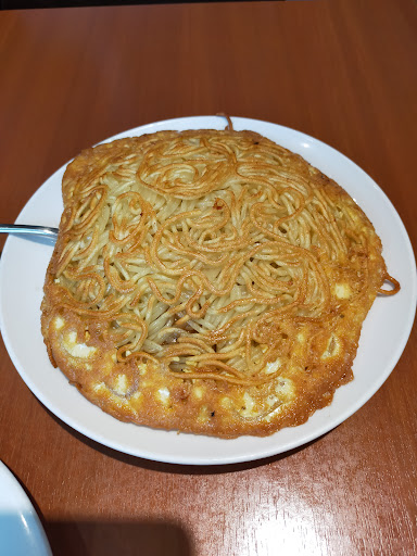 待つことその後5分。梅蘭焼きそばが到着。久しぶりの梅蘭焼きそば。鍋で焼いていると思われる焼きそば麺なので、パリパリと割れる訳ではないので、じっくりと箸とスプーンで小分けに。 中から具と言うか餡が見え隠れしていました。食べ始めて思ったのですが、思ったより餡が少ない様に感じました。気になって麺を持ち上げてみてみたのですが、気持ち的にはもう少し餡が欲しいかなぁと。また、餡に具が少なく、片栗粉で固めたダマの様な餡かと。