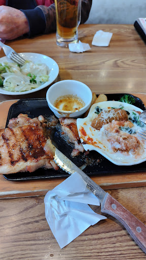 You can eat hamburgers and steaks at very reasonable prices, and if you pay a little extra, you can have unlimited refills of salad bar, drink bar, rice, etc.