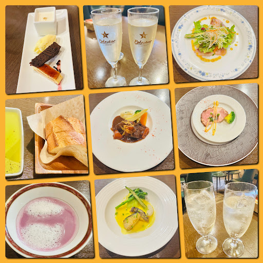 Today we had the weekday-only lunchtime-set meal. The wagyu beef was stewed in red wine and the fish was fantastic. Everything we tried was better than we expected. The sweet potato soup was unique with a sweet taste. I liked the Yuzu sorbet dessert because it was very refreshing after a big meal. My husband loved the grilled fish and sashimi dish the best.