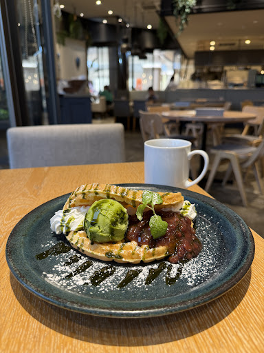 Read moreI tried their American Waffle with Matcha, Red Bean, and Whipped Cream. The presentation was beautiful, a golden waffle topped with a scoop of rich green matcha ice cream, sweet red bean paste, and fresh whipped cream, all drizzled with matcha syrup and finished with a light dusting of powdered sugar. The waffle itself had a pleasant crispness on the outside while remaining soft inside. The combination of slightly bitter matcha and the gentle sweetness of red bean worked perfectly together, balanced by the light cream. The matcha ice cream was flavorful and smooth, complementing the warm waffle beautifully. Enjoying it with a cup of coffee made the experience even more relaxing in the spacious and modern cafe...