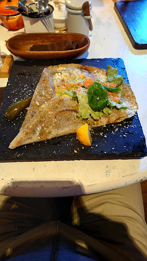 Read more正直うーんという感じ。 ガレットが微妙。アンチョビのやつ頼んだけど、甘いのとしょっぱいのが混在し、ところどころ食べるのが辛いくらい塩辛い箇所があった。あとガレット大きすぎて飽きるし、ガレットだけでお腹いっぱいになっちゃう。 あとこの味だけに、ワインが欲しい。