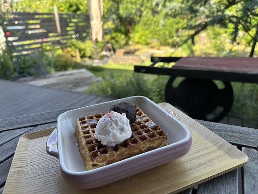 Read more平日の15時過ぎにお伺いしました。住宅街にひっそりとあります。店内にはテーブル席が数席と、テラス席が2席あります。テラス席にお邪魔したら、イングリッシュガーデンのような素敵なお庭が一望できました。 店員さんも親切で、子どもにお庭で遊んでねと声をかけてくれたり、椅子のクッションを持ってきてくれたりしました。 ミートソースのランチセットとさくらワッフルを注文しました。ランチセットにはサラダとドリンクがつきます。ドリンクのホットココアは甘さ控えめのビターなココアでした。 ミートソースは甘めのソースが美味しいパスタで、子どももよく食べました。 さくらワッフルは上にさくらのアイスとあんこが乗っていて、ワッフルも2枚あり食べ応え抜群です。 お庭を散策できて子どもも喜んでいましたし、のんびり...