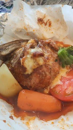 この日は煮込チーズハンバーグ。 コーンご飯、具沢山のお味噌汁。 物凄く丁寧で美味しぃ♡