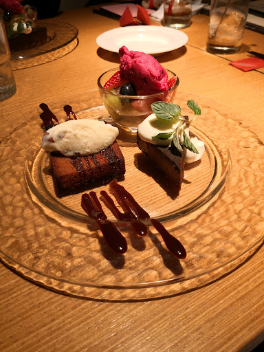 We got the Valentine's Day course menu. The apatizer of quiche, soft shell crab and Pâté was good. This was followed by our choice from the main menu. We chose a tomato, basil, and parmesan cheese risotto. This was probably the best dish, I loved it. Following the risotto was a truly excellent pizza, with pork, a little bacon, and black olives. After that there was a dish of beef, which was a little too fatty for me, but the Japanese like fatty beef, and my Japanese wife loved it. Finally there was a desert of chocolate cake, fruit and sorbet, and a really nice caramel pound cake.