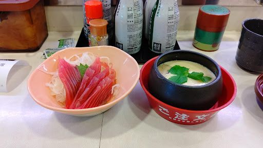 Read more平日は90円+税 祝日は100円+税です。入口に海水魚の水槽。受付に何故かペッパー君がいます。(残念ながら座席の発券機はお客さん手動なのでペッパー君の出番無し)ペッパー君・・・(涙) 休日は家族連れで賑わってますが、平日は割と空いてます。他の回転寿司より刺身など酒のつまみ系が多いです。タッチパネルの音声がフリーザだったり(今は元に戻った)子供受けなのか???な所が多々あります。 従業員が少ないのか、会計時に待たされる。 みそ汁にご飯粒が入っている。皿の色を間違える等、課題もありました。 以前、カウンターでおじさんが注文した品物を手前のお爺さんがみんな食べてしまい「貴方、私の寿司を取らないで下さい!さっきも取ったでしょ」とコントの様な場面を目撃しました。 確かに音声だけだと解りずらいので特設レーンを設けた方がいいかも知れません。 ...