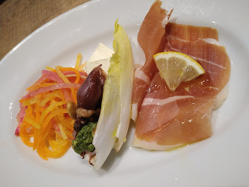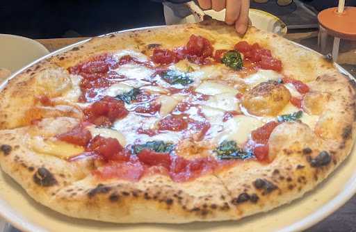 Read more子供2人と大人2人で、日曜のランチ12時ごろに行く旨を当日電話予約しましたが、着くと名前が入ってないようで満席気味なのもあり店員さんが慌ててました。 なんとか通してもらった席は入り口のすぐ横で、人気店のようなのでドアが頻繁に開くため冬は冷気が入ってブランケットを借りてても寒いし慌ただしいし居心地が悪かったです。 スマホ注文を促されたのですが注文して10分ほど震えながら待ってもドリンクも来ず、「スマホオーダーがシステムエラーで止まってるので注文お伺いします」と言われ、再度同じ内容を注文しました。 さらに待ち続けますがドリンクは来ず、真横ではまた予約客の席がない雰囲気で、私たちに対して「あそこに移動してもらおう」という雰囲気が伺えました。 案の定、話を持ちかけられた時、これ以上寒い席で待つのも食事するのも嫌だなと思ってたので、移動してもいいし退店でもいいと伝えたらとりあえず奥の席に通してもらえました。 それからさらに待ち続け、ドリンク来ないんですが、と伝えたらすぐ来ましたが、その時すでに12:40を過ぎてました。 それから徐々に前菜・スープが運ばれましたが子供達はお腹が空いてまたー?まだー?と急かしてきますが、ピザが届いたのは13:10ごろ。最初に注文してから1時間近くたってメインにありつけた・・・ 子供は待ち疲れてました。
