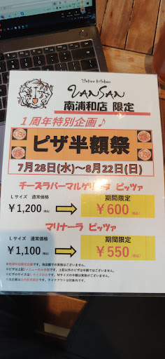Read moreFinal call for those who are quick. Go today (22nd August) and order directly from the staff a full pizza for only 550-600 yen. ( Anniversary special). Conditions apply, see leaflet. The pizza was very yummy, the dough chewy and the staff service hospitable. And a full jug of cooled ice tea courtesy of staff. Small terrace seats are available. Really...