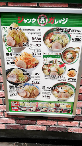 Read more何回か行ってるけど、いつもまぜそばとライス頼んでます まぜそば最&高 まぜそばの麺食べた後の汁にライスぶっこんで食べるやつ最&高 チャーシュー最&高 化学調味料最&高 って感じです。 最近、都内からのポッと出の豚山って行ったんですよ。 豚山は最&低 まぜそばもラーメンも食べに行った。最&低に2回も行きました。 豚山のまぜそばは全然ジャンキーじゃありません。マヨなんて入ってないしとりあえず路線が違う。 豚山のチャーシュー柔らかくて美味いって書いてる人いるから期待して行ったのに繊維?みたいなのが凄くて噛むのが大変な固いチャーシューでした2回とも。 最初なんて固いチャーシューの端っこだされるからガチで顎疲れました。 それでリベンジで行ったのにまた固いチャーシューでした。もう絶対豚山行かない。 やっぱり安定のジャンクガレッジさんです。 ジャンキーな気分を満たしてくれるのはジャンクガレッジさんだけです。 いつも安定なジャンクを提供してくれてありがとうございます。 そのままが最&高なのでよろしくお願いします。 お客さんが豚山に一時的に取られるかもですが、きっと戻ってくると思います。 豚山の前よく通るのですが、最初の頃の行列はもうなくなってきました。 ジャンクガレッジさんの大宮東店さんが始まった当初はもっともっと長い間行列が続いていたと思います。 ポッと出の豚山の客はきっと気付くと思います。 最&高はジャ...