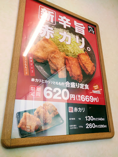 Read moreチェーン展開している唐揚げ屋さんとして、安定のお店です。 期間限定メニューが常にあり、飽きさせない事でお店の前を通ると目を奪われます。