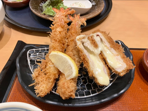 エビもしっかり大きめ。中が小さくてがっかり、ということはありません。 チーズカツはミルフィーユ状になった薄切り肉にたっぷりのチーズがこぼれ出ていて、もう運ばれた時から盛り付けにもこだわりを感じました。 そして衣!! 全然あぶらっこくなくて、食べ終わるまでずっとサクッサクッ…何か秘訣があるのでしょうか…...
