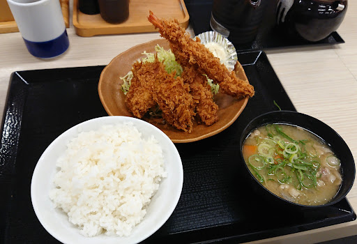 Read more2021.8 かつやはやはり豚汁定食がおいしいですね この時期だと+¥100でおろしポン酢を足すのも有 たまに行く店舗。 2020秋、限定海鮮フライ(広島産と銘打ったカキといつものエビフライ2個づつ)定食を頂く。
