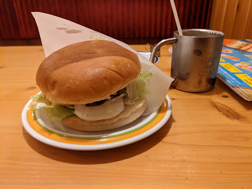 Read more話題のフルムーンバーガーを食べに訪問。 節電の関係で外回りの照明がついていないところがあり、一瞬「営業してる?」と不安になりました笑 店内入ると電源を使用するか尋ねられ、自分はお腹の充電だけだったので特に利用せず。 でも通された席が衝立?(あの壁はなんていうんだ?)で区切られたブロックの中に席が左右2つあるところ。 そして片側にはすでに大学生っぽい2人が!! 他にも空いている席あるのになぜここなんだろう…どっちも男でこちらはソロだからまあ大丈夫やろ的な?笑 大学生兄ちゃんズも「え?なんでここ通すん?」的な顔でお互いなんとも言えん空気に。 でもなんか理由があってこの席なのかなーとか目があっちゃったあとに別の席でとも言いづらいしなーと考えてしまい結局その席に。