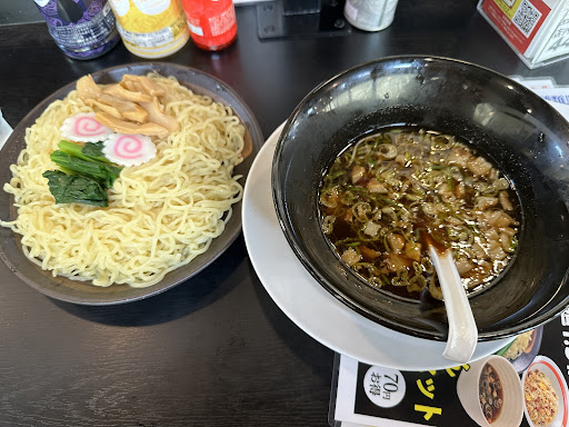 Read more本日11:30頃 気になるメニューに釣られて訪問。 メガつけ麺 麺が3玉で ¥930 通常のつけ麺は麺が1.5倍で ¥630 単純に通常の倍となる麺の量でしたが 残念ながらメガと呼称するほどのボリュームは感じられませんでした。 YouTuberのはいじがこれを2つ注文したのも理解出来ます。 味は以前からあるつけ麺と特に変わらず 普通に美味しいです。 そんな訳で 割りスープを飲みながら もう一つ気になった限定メニュー トマト&カレーラーメン ¥760を注文。 添付された紙エプロンを付け 食べ方のマニュアルにのっとり頂いたのですが、 予想通り 残念な内容でした。 上にかかっているチーズらしきものは なんの仕事もせず フレッシュトマトに至ってもなんの旨味もなく酸味も飛んでしまい 食感として残るのはただただ玉ねぎのシャキシャキ感と甘みだけ。 限定メニューと言う事で¥760の限られた予算のためか食材として楽しめるのは温タマくらいで 後はただ玉ねぎだけと言うかなりショボい内容でした。 幸楽苑さんが本気で取り組めば もっと素敵なカレーラーメンが作れると確信してるので 次回に期待します。 個人的に幸楽苑さんの麺は好きです。