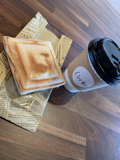 いずれもテイクアウトでき、今回はホットサンド(ブルーベリーチーズとチョコバナナ)とコーヒーをいただきました。 ホットサンドは耳がちょうどよくカリッとし、中はぎっしりで美味しかったです。 テイクアウトでしたが、お洒落な気分。