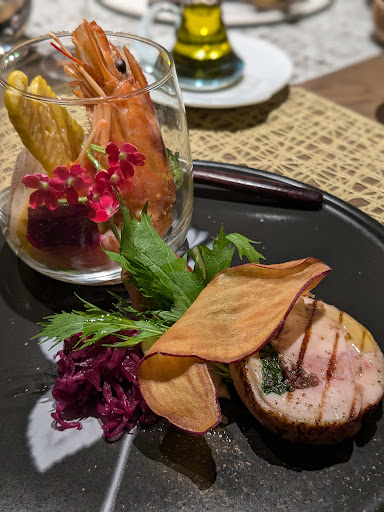 野菜不足が常である現代人です。 健康は誰しも気になりますね? お野菜たっぷりをウリにしているお店はそれだけでも好印象! コースを通して何種類のお野菜を食べられたかな?なんて数えたくなってしまう(^^) お味が美味しいことはもちろんですが、あのワクワクはなんだったかなと思い返してみると、料理人さんの盛り付けのセンスかなと思うワタクシでござきます。 お写真で伝わるかな、どのお皿も宝箱みたいに食材で蓋がされているというか上手い表現が見当たらないんですが、食べる時にほとんど全ての皿で「おぉっ!」となりました。