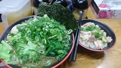 セントラルキッチン以外の本格的な家系としては初で、地元周辺で比較的近くて人気の麺家紫極さんにお邪魔しました。 消毒後、券売機でラーメン(大)全部乗せ1100円+夜限定まかない飯50円計1150円 好み聞かれ全部普通でオーダー 全部乗せの具、九条ネギ、のり3枚、ほうれん草、チャーシュー2枚だったかな?味玉1個。まかない飯は、ご飯(小)の上にチャーシューの角切りとネギ少々で特製タレがかかってる物。 麺量は並で160g、大で240g 卓上には、胡麻、ショウガの千切り、磨り下しショウガ、磨り下しニンニク、辛味噌?、お酢、胡椒、卓上の上の段にカラメ別途追加するタレ。 味の評価、麺はモチモチ感があり自分好み スープは乳化しつつもほんの少し醤油寄りな印象で、スープもケチる事なく多く入ってて、私としては丁度良く美味しく完飲までしました。 スタッフの手間暇かけて作ったスープはしっかり味が出てるのが分かります。セントラルキッチンで提供する家系はスープが少なかったりして値段設定も高めで麺大盛0,5玉100円取るんですよね汗 スタッフの対応も食べ終わり出る時も接客良かったです。 残念だった点、店内が暑い事と今のご時世、コロナ対策でアクリル板で仕切ってほしいと思いましたね。 店内が暑いマイナス1、アクリル板の仕切りがないマイナス1で星3にしました。 ※車でお越しの場合、ことぶきパチンコ店の立体駐車場、次に食べ終わったらラーメンスタッフでスタンプ押してもらい、次に、パチンコ店のカウンターに設けてある赤いパトランプにセルフで差し込み完了。後は駐車券...