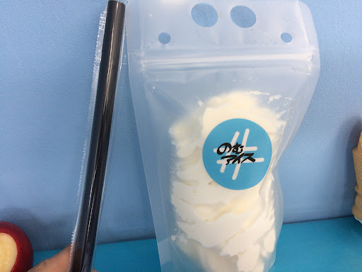 ・ソースを入れたら袋のチャックをしめ、30秒くらい揉んでアイスとソースが混ざったら完成!