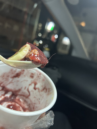 オープンしたばかりの頃に行ったのでわりかし混雑していました。(7月の正午過ぎ)。 提供に時間がかかっていたので、袋にアイスを詰める作業が大変なのかなと思いました。持った瞬間想定より柔らかく、あまりソースを入れちゃだめだなと(注意書きもありましたね)思いましたので、量は気をつけました。 あと苺ソースはかき氷シロップのようで、これもイマイチな点でした。価格を上げてもいいから、普通のいちご味がするシロップをかけたかったです。 真夏なのでまた、お店から駐車場に戻る少しの間でも溶けたんだと思います。シロップが常温だったのもあるのかなと思いました。 私はオレオが入っているものを頼みましたが、車に戻って飲んだ時点で底の方が液状で、オレオのさくさく食感も、液に溶けて失われていて、アイスっぽい部分が中央部分だけでした。