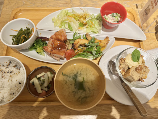 They offer a wide variety of food that all comes beautifully presented. I ordered the Hamburg steak and avocado beef sukiyaki (ハンバーグとアボカドの牛すき焼き). This came with a bowl of rice, miso soup, a salad, potato salad, pickled vegetables and tofu. While it may sound like a mountain load of food, the sides were all just the right amount to not be overwhelming. Everything from the pickled vegetables to the main dish tasted great. The variety of side dishes really helped to round out the flavor profile of the meal. The Hamburg steak, which was cooked in the sukiyaki broth was delightful. You also have the option of a "drink bar", which I opted for. Unlike most places where the drink bar is simply a drink dispenser, here they had all their options in jugs, which only worked to enhance the already unique vibe of the restaurant.