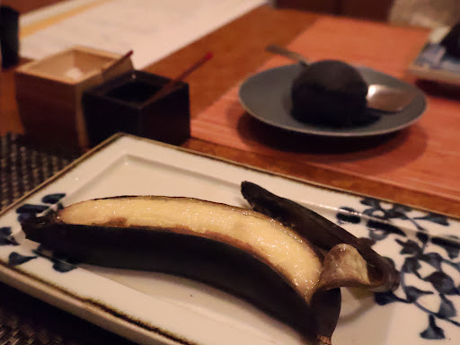 .デザート・炭火焼バナナ&アイスクリーム 40分かけて焼き上げる炭火焼バナナ。 すると中は・・・?🤤