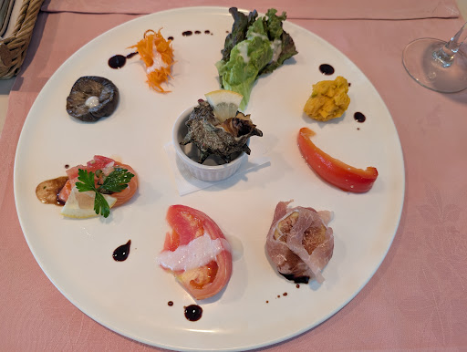 Read more平日ランチを予約して伺いました。 お電話の際に食べログを参考に「軽いコース」でお願いしますと伝え承諾いただいのに、お店に着いたら軽いコースはなくなって、このコースになりますと、値上がったコースにされました。 電話の際に、ご説明いただきたかったです、値上げもされていましたし…。 メニューをチラッと見せてすぐ下げられてしまったので、写真撮れず…。 パスタ、ピザ、リゾットのメニューを何の説明もなく置いていかれ、一人一品なのか、シェアしていいのかなど、わならぬまま注文しました。 ほとんどのメニューがプラス料金なので、コース料金よりかなりプラスされます。 カトラリーも最初からセットで、置いてあり、そこにこちらも良かったらお使いくださいと小さいフォークを追加で置いていかれたものの、何に使うのか説明もなく、デザート用かな?と思ったら前菜のサザエが食べにくかったから、多分それ用だったのですね…使わず終わりました。 スタッフのみなさんとても丁寧なのですが、もう少し客への心遣いがほしいかと思います。 お料理は、どれも美味しかったです。 ただ、パンが小さいもの1個だけなのが寂しいのとピザ生地もカリカリで美味しかったけどチーズが普通のとろけるチーズのようなもので生ハムが埋も...