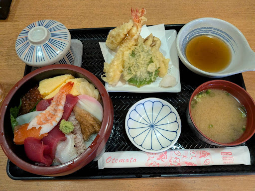 口コミが良かったので期待しましたが海鮮丼のネタはごくふつうで種類もそこまで多くなかったです。その日の仕入れ具合にもよると思いますが。品数のお得感はあるけど天ぷらも茶碗蒸しもごくふつう。シャリに胡麻がかかってるのとお味噌汁のお豆腐がたくさん入ってるのはよかったです。