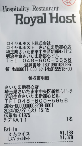 I took a day trip to Saitama for a few hours. While I was near the station I didn’t have any breakfast and saw a Royal Host nearby. The staff was kind and seated me quickly. My omelette plate arrived within a few minutes and it was quite good for a $5 meal (740 yen). The omelette had a nice assortment of veggies inside and cooked perfectly. I was pleasantly surprised that the bacon (which I heard wasn’t great in Japan) was GOOD! The potatoes and toast completed the meal. Plus the blueberry yogurt tied it all together. You definitely won’t find a meal as good as this at a Dennys in the US...