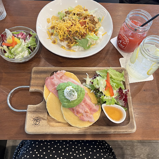 問題は料理です。 私はランチのパンケーキを注文しましたが、一口食べて感動がゼロ…むしろ味がしない…。気のせいかと思い食べ進めても、これといった味がなく、はっきり言って美味しくないし、何を食べてるんだ?と感じました。 パンケーキ×ベーコン×アボカド(サワークリーム乗せ)に、′メープルシロップ′をかけて食べてみる→メープルの味しかせず、他の食材の味が皆無。ベーコンに塩胡椒がなされてる訳でもなく弱火で焼いた薄いベーコンも味ゼロ。気のせいかアボカドの味もしなくて、サワークリームだけ遠くから味がする程度。ベーコンとアボカドは乗せる意味があるのかと思うほどです。
