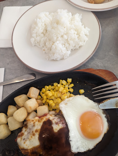 Read more今日は平日の昼下がり。 3年振りに入店。 朝を食べ損ね、お腹が空いたのでドカ食いボッチでいざ☆ ランチのハンバーグオニオンソース、ライス大で注文。 サラダは食べたいのが無くスルー。料理到着。ライス少し私には柔らかく感じた。 ハンバーグはお値段なりかな?ソースが薄く感じた。 これでは足りないので、追加で迷った末にカルボナーラをチョイス。温玉崩して食べてみた。薄い。クリームの味を感じない。やっぱり安全パイでアラビアータにすれば良かった。何かムカックので最後にミラノ風ドリアを頼んだ やっぱり看板商品らしく旨く感じた。今日は1人だったので入ったが2人で食事なら...