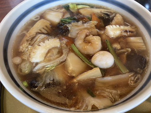 Read moreテレビで美味いと評判の五目うま煮麺を食べに行ってきました。 待ちはそこそこありますが、店が広く席数があるのでほとんど待たずに着席できます。 テレビでの評判は話半分に聞いといた方が良いのであまり期待はしていませんでした。 が、これが評判通り美味しい。数ある中華屋の中でもトップクラスです。細麺の硬さや滑らかさ、スープとの絡みも完璧です。具材も豊富で覚えてるだけでも白菜、きくらげ、にんじん、椎茸、豚肉、えび、いか、うずらの卵、柔らかい穂先筍など種類豊富でそれぞれが素材の味を保ちつつ食べ応えがありました。エビのぷりぷり感やいかの柔らかさ野菜の食感などどれをとっても素晴らしい。 冷めにくいコクのある醤油味の餡は最後まで熱々でいただけました。 テレビも信用しても良いのかな?と思えたお店でした。駐車場がギチギチなので多少の腕は必要ですが回転が速いので待っていればすぐ止められます。待合室も清潔で感染対策もバッチリ。お子様には男の子用と女の子用のガチャガチャがありました。 久しぶりに行って頼んだ大好きな五目旨煮そば。作り置き餡で最悪だった。慌てて本部にメール。本部では作り置きは絶対やらないとの回答。この店の調理担当の怠慢とわかった。 指導が行くみたいでこれからはあの美味しい旨煮麺が食べれると思うと嬉しい。何故ならここより美味しい店を知らないからである。 星を五つに戻すのは改善を確認してからにしよう。 再訪。五目旨煮そばは改善されているかの確認。 近所の中華屋4-5軒廻ったがここより旨い広東麺は見つからなかった。 餡強めをお願いしたのだが、結果はダメ。 ところどころドロドロの塊がある。 味はすこぶる良いのだが残念でしょうがない。 初めて行った時のあの感動は鮮明に覚えてるだけに悲しい。 炒め係は日が浅いバイトだろう。まともに鍋を振れない。こんなムラのある餡は素人料理だ。多分ここのチャーハンは美味くないと思う餡もまともに作れないのにチャーハン振れるはずはない。 早くベテランが帰ってくる日を期待してます。 味や素材は抜群なんだけどなぁ 近くまで来たので再訪。 昼前だったのでさほど混んではいなかった。中を覗くと炒め係は新人さんのまま。五目旨煮麺は期待できないので麻婆麺。 着丼まで時間がかかる。相方が食べ終わった頃やっと来た。 こりゃいかん。麺がつけ麺用の太くて硬いやつ。麻婆豆腐も普通の美味しさ。ここより数倍うまい店を知っている。 早く五目旨煮麺を食べたいが調理場の鍋の振りがぎこちなくまだ慣れていない様子。 早くここの旨煮麺を食べたい。なぜならここよりうまいところを...