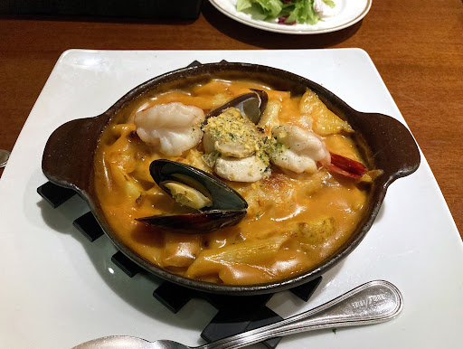 ブラックタイガーと帆立、ムール貝の オマール風味のシーフード...