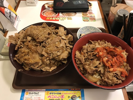 遅い昼ご飯を取るのに、駐車場があるところを探して通りがかりにあったのでよってみました。 カウンター席とボックス席がそれなりにある、ごくごく普通のすき家です。