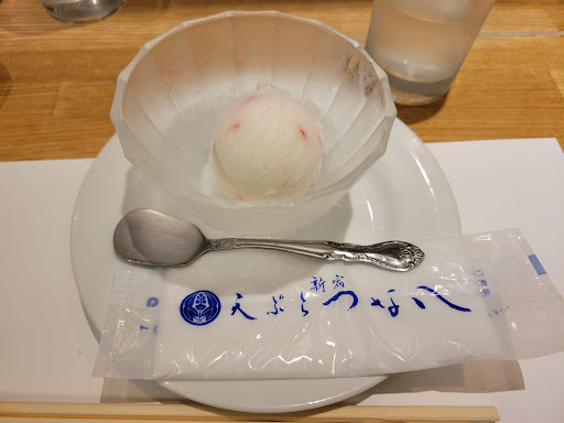 先付けにジャガイモにトリュフソルトとバターで香り付けした天ぷら。 海老は身も旨いが、カリッと揚がった頭がたまらない。 若鮎は泳いでいるかのよう。 野菜は万願寺唐辛子、茄子、いずれも一手間加えてあります。 大アサリの姿揚げ、アサリの下に椎茸があるのですが、苦手なので長ネギに変更して貰いました。ありがどうございます。 ウニの海苔巻き、食べたことが無い贅沢な一品。ウニの旨みが口いっぱいに広がります。 口直しのトマトの冷製スープ、口がすっきり。 イカ、大葉のソースがイカとよく合います。 穴子、一切れは醤油の味で。身は当然旨いが、中骨が香ばしい。 締めに小エビのかき揚げを天ぷら茶漬けで。 予約時に誕生日のお祝いと伝えておいたら、サービスでアイスの天ぷらを。洋食のお店みたいな一皿。