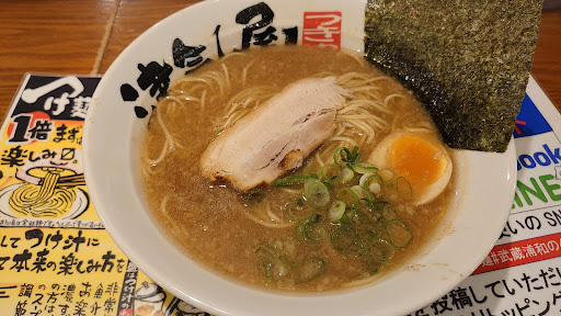 ぱっと見、いわゆる豚骨醤油ラーメンです。 スープには背脂がすこ~し浮かんでて、麺は細め。