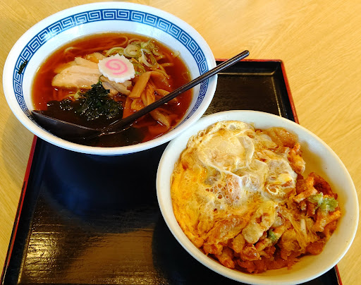 Read more国道16号線沿いにある店舗で、広い駐車場があります。 入店して正面に『セルフレジ』があり、それを取り囲むように『コ型』のカウンター席があります。左右の窓際は『テーブル席』となっています。 着席してメニューを決め、呼出しブザーを押すと店員さんがオーダーを受付けに来てくれます。 水はセルフです。 『昔ながらの醤油ラーメン』と『ミニかき揚げ丼』を食べました。 ラーメンは名のとおり、シンプルかつあっさりした優しい味です。近年のこく深い出汁スープのラーメンしか知らない若い方には『昔ながら』が分からないかも知れませんが😅 麺はモチモチの平打ち麺で、スープとの相性が良いです。 ミニかき揚げ丼は、一見、親子丼かと見間違うほどのフォルムで、かき揚げが卵とじされています。 味、量、価格総じて、コスパは良い方だと思います。 精算はセルフレジで、電子決済やクレジットカー...