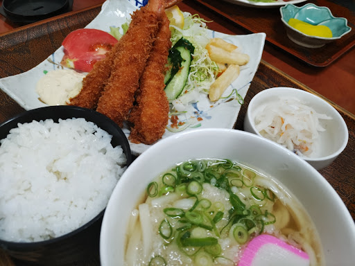 Read more妻と義母とでお伺いしました。 ラーメン、うどん、定食等バリエーション豊富な定食屋さんて感じですね。 13時過ぎでしたが、お客さん結構居ました。テーブル席が2席と対面式のカウンターが8席くらい。 奥に座敷が沢山ありました。 義母には座敷はキツいので、テーブル席を希望するも、満席だったのでカウンターで食べる事に。 コロナ対策でカウンターには仕切りがありました。 私はラーメン、妻にはお願いして肉うどん、義母はちゃんぽんを注文。 ちゃんぽんがあるので、ラーメンは豚骨だと思っていたら、何と醤油ベースのラーメンでした。見た目よりあっさりでちょっと食べた妻は美味しいと。麺は細麺。大きなチャーシューが3枚。トロトロ系ではなくしっかりした肉々しいチャーシューで味はあまり付いてない感じです。 肉うどんは天かす入り。ちょっと食べさせてもらいましたけど、超美味しかった。出汁の色は薄いけど、しっかり味が付いていて、肉うどん特有の甘めです。清武町にある天照うどんに似てますね。 流石に義母のチャンポンの試食は出来ません😅 感想聞いたらボリュームあって、味は濃いめで美味しかったと言ってました。 肉うどんは星5つ。ラーメンは星3つ。 トータルで星4つ...