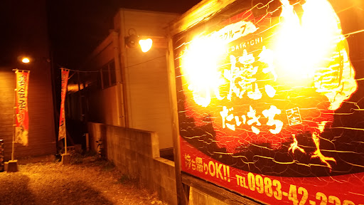 仕事で西都に来て1週間、来週一杯で西都を離れるので、どうしても宮崎名物の鶏の炭火焼を食べたいって思い、歩いて来れる「だいきち」に伺いました。 まだ早い時間、祝日前の18時頃、扉を開けて「一人だけど大丈夫?」って尋ねるとカウンターに通されました。 注文はタブレットですね。速攻で生ビールを先ずは注文し、喉を潤します。(^-^) あー、美味い!! 俺はこの為に生きている、、なーんてですが、その位美味しいです!タブレットをじっくり眺めて、先ずは炭火焼のもものばらし、大人のポテサラだったかな?を注文しました。カウンターなので、炭火の業火に焼かれていく鶏肉を眺めながら、早く食べたいの気持ちはマックスです!炭火焼キター! 多分、宮崎で食べる炭火焼としては、かれこれ20年以上ぶりだと思います。見た目も滅茶滅茶旨そうだし、早速一口・・・あー、炭火で焼かれて香ばしくも、皮はコリコリして噛み応えのある肉、味付けなんてシンプルだけど、本当に美味い!!こりゃ止まらんばい!! (注:福岡市民です。)何とも言えない旨さですね。 焼酎にもピタリ合います。ちなみに黒霧をボトルで入れました。グラスで飲むと高く付きますからね! 大人のポテサラも黒コショウがしっかり効いていて、輪切り唐辛子を混ぜ込みながら食べると、これまた美味い!味付けも濃いので、これまた焼酎にピタリですね。周りを見渡すと何時の間にかお客さんが一杯で賑わっています。持ち帰りで来店される方も多かったですね。 この炭火焼なら納得です。家では作れませんからね。 最後に砂ずりの炒め物を食べて、お腹も満腹。 いやー、満足しました。どの料理もとても美味しかったです。店員さんは若い子ばかりでしたが、料理のクオリティは高し!強いて言うならば、店員さんに笑顔があれば文句なしですね。本当ですよ! 美味しく食べて飲んで、料金もリーズナブル、、 素晴ら...