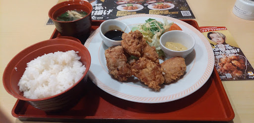 日曜のランチで来店です。 リーズナブルな塩唐揚げ定食(¥548)を注文です。 カラッと揚がった唐揚げはジューシーで美味しいです。 皮もパリッとして良い感じ。味噌汁、漬物、小鉢が付いてこの値段は素晴らしいと思います。 ほっともっとの4コ入りから揚げ弁当(¥570)よりも安い驚愕のお値打ち定食。ジョイフル頑張れ!と言わずにはいられません...