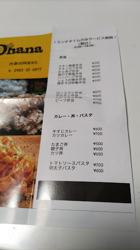 主人と二人で西都温泉に行った帰り、以前から気になっていたオハナ食堂へ。お昼少し前に行きました。かろうじてテーブル席が空いていましたが、その後もどんどんお客さんが来る感じで奥の座敷にも通していました。 主人はホルモン定食¥1100、私は親子丼¥780(税抜き)を注文。混んでいたので20分位待ちました。 良いお店って、同じテーブルの注文品を同じタイミングで持ってきてくれますよね。 主人と一緒に「いただきます」 ホルモン定食はてっきりいわゆる【こてっちゃん】という味噌味のホルモンが出てくるものだと思っていましたが、ホントのホルモンのみそ炒め。少し玉ねぎと炒めてあり、キャベツの千切りが一緒に盛られていました。 一つもらって食べたけど、うん美味しい。 私の親子丼は少し甘め。つゆと卵は少なめ。付け合せにごま油で和えたモヤシとお漬物、よくある味噌汁でした。