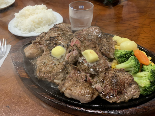 Read more正直に大好きなお店です。お金のない学生としてはなかなか行けませんけどねwしかし、この夢の1ポンドステーキ。初めて食った時は感動しました。うめえじゃねぇか!!!某イキリまくってるいき〇りステーキよりこっちの方が個人的に好きですね。お店のマスターは一見するとスーパー無愛想ですが、喋るとめっちゃ面白い人です。無愛想に見えて優しいですし。バイトのねーちゃんも仕事ないとテレビ見てますけど、このくらいの雰囲気で十分。小さい頃親父に連れてきてもらった時となんだかわってなく、こうゆう雰囲気で、ああ、リベラ来たなって感じがします。給料日はリベラに行きたい。そんな気持ちにさせてくれるお店です。ニンニクをたっぷり塗りたくってそこに醤油をぶっかけて食う。やはりここで食べるこのスタイルが肉を味わう上で1番うまい食べ方かもしれません。外見はボロボロで店も脂でベタついていて、薄暗いお店ですけど、外見で判断しては行けません。ここは高級料亭でも高級フレンチでもないんですよ。肉をガッツリ美味しく味わうのに外見も内装も関係ない。ただただ大きなお肉を貪り食う。そのためにここに来るんですから。いつまでも続いて欲しいお店です。