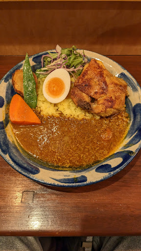 Read more沖縄の雰囲気を感じるカレー屋さん。水を飲むコップも琉球ガラスなのか?涼しい気分にさせてくれます。カレーを盛り付けているお皿にもこだわりを感じます。雰囲気とてもよいです。 さてカレーですが、辛さ40のココスリランカを頼みました。食べている途中で頭の後ろから汗をかいてきて心地よかったです。辛党にとってはちょうどいいですね。具もたくさんあるという印象です。チキンも大きくてケチケチしていない。野菜はグリルされていて美味しいですね。おかわりは一回まで無料なので950円でもいいかなぁって感じがします。現在現金のみの対応なので注意しましょう。(9月3日)
