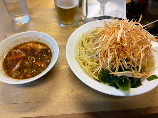 早い時間に行けば「つけ麺チャーシュー」。12時半を過ぎるとチャーシューが売り切れてることが普通なので、「ネギつけ麺」をオーダーします。 ラーメン類も過去に食べましたが、こちらで私のオススメはつけ麺。